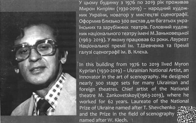 Мирон Володимирович Кипріян — видатний художник, був головним художником театру ім. М. Заньковецької. Лауреат Національної премії України ім. Т. Шевченка, лауреат премії імені В. Клеха (США).