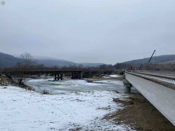 «Балки – досить складні конструкції. В Україні є два заводи, які цим займаються, тому довелось чекати на їх виготовлення тривалий час. На об’єкті цілодобово працює підрядник. Вже влаштували під’їзні шляхи до мостового переходу, змонтували верхні регелі несучих опор та 35 балок. Проводять в’язку арматури, це повністю ручна і складна робота. На наступний тиждень облаштують бетонне покриття. А весною укладатимуть асфальт», – зазначив Юрій Бучко.