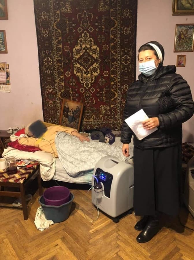 «Тоді людина приїжджає у нашу патріаршу курію, з нею укладаємо договір оренди кисневого концентратора (зазвичай, на 2 тижні) і вона забирає безкоштовно додому», – додає сестра Севастіяна Карвацька.