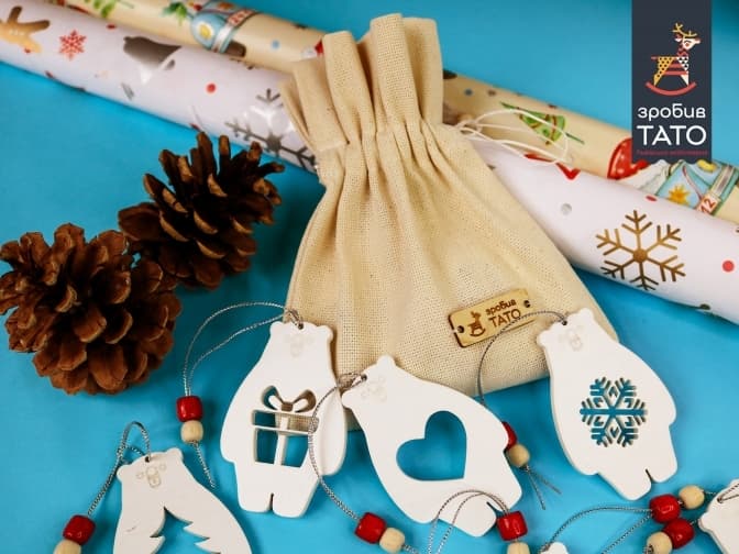 Замовивши особливий набір прикрас-ведмедиків, а це 8 іграшок в полотняному мішечку за 220 грн або 16 іграшок в дерев’яній коробці за 420 грн, 50% вартості компанія віддасть на потреби дитячої лікарні ОХМАТДИТ.