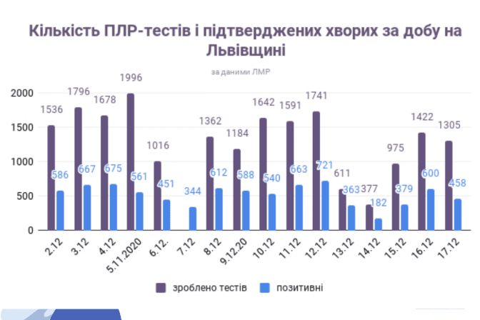 Станом на 08.00 год. 17 грудня, у Львові та на Львівщині 458 підтверджених випадків інфікування коронавірусом, повідомляє ЛМР.