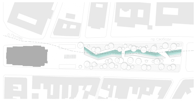 Львівське архітектурне бюро Guess Line Architects розробило концепцію штучної водойми та громадського простору у самому центрі Львова – навпроти оперного театру і аж до пам’ятника Шевченкові. Водойма імітує русло річки Полтва. Про це Тvoemisto.tv розповів архітектор Guess Line Architects Андрій Лесюк.
