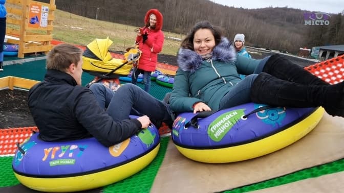 Дві траси тюбінга запустили лише нещодавно – 19 грудня. Для екстремалів розрахована 70-метрова гірка з поворотами. Для тих, хто менш екстремальний, працює сімейна траса, де одночасно може спускатися по кілька людей.