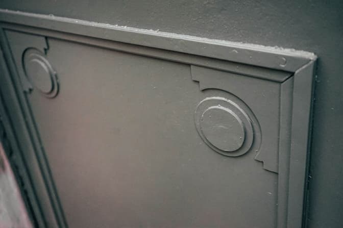 Металеві двері-близнюки були в поганому стані. На поверхні залишилось безліч пошкоджень, а на місці декоративних елементів хтось навіть приварив кодовий замок.