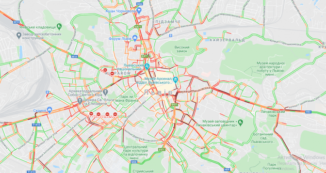 Відповідно до онлайн-мапи, львів'янам радять оминати вулицю Богдана Хмельницького, особливо на ділянці від Епіцентру або Автовокзалу Північний в бік села Малехів. Там чи не найбільші затори в місті (темно-червоний колір позначення). Окрім цього, центральні вулиці, як-от Дорошенка, Городоцька, Підвальна, Івана Франка теж дещо в заторах, на окремих ділянках утворилися тягнучки.