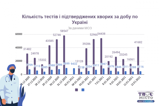В Україні за добу підтвердили 5 116 нових випадків коронавірусної хвороби. У стаціонари госпіталізували 1 092 людей, померли від ускладнень 184 пацієнти, а одужали 15 951 українцець. За добу в країні провели 41 682 тестувань.