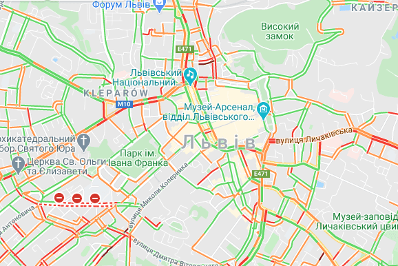 Згідно з даними Google Maps, станом на 09.20 год. затори у Львові є на: