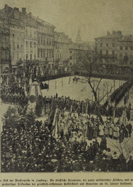 Так виглядало освячення води на площі Ринок у Львові. Das interessante Blatt, 1911 рік: