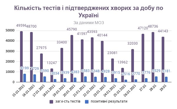 В Україні станом на сьогодні, 27 січня, виявили 5 181 нових випадків коронавірусної хвороби. Зокрема, захворіли 218 дітей та 212 медпрацівників.