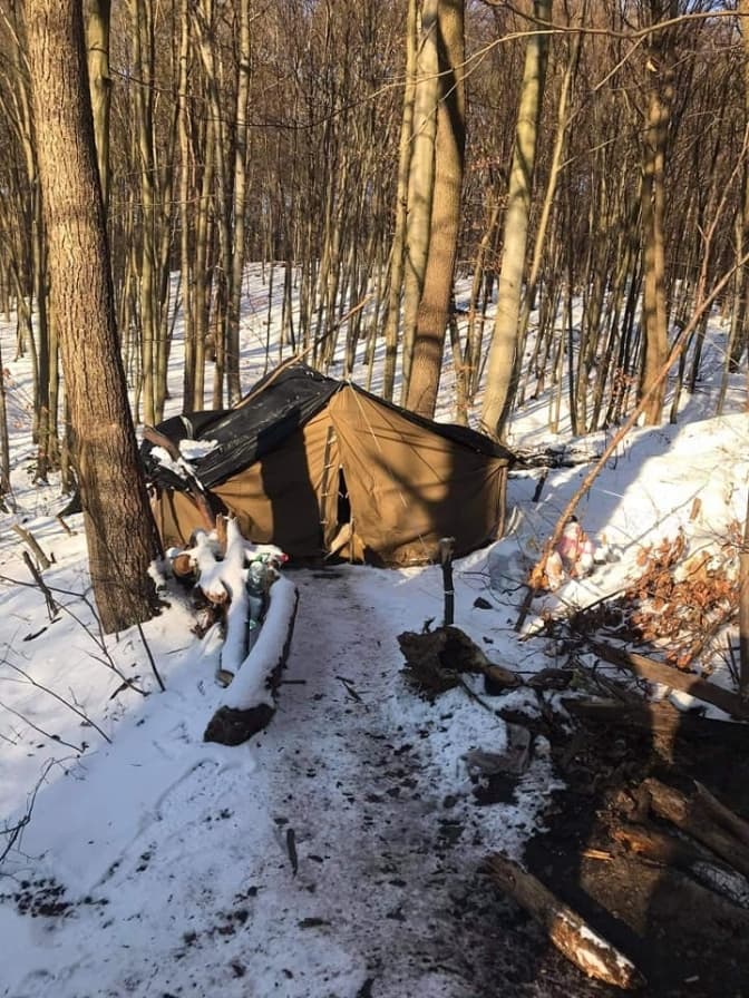 Волонтери відвідали пана Романа, який поселився у брюховицькому лісі. Йому завезли продукти та передали одяг. Про це Тvoemisto.tv повідомив Іван Данилів, який організовував збір допомоги.