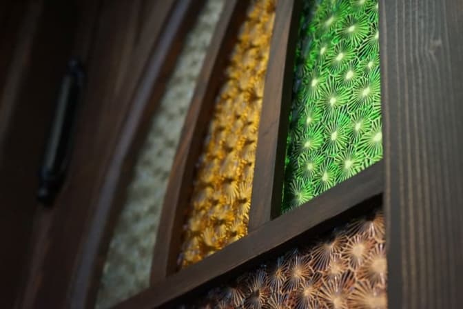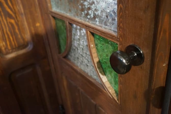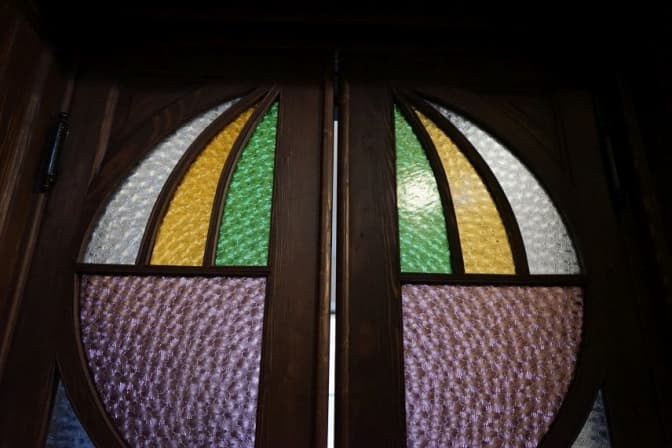«Декілька частинок автентичного кольорового скла збереглося, інші вже довелося докупляти. Це додало нам трішки складнощів, адже саме скло не гладке, а візерункове у вигляді численних малих квіток. Нам потрібно було підібрати таке ж. Зібравши все це в певну композицію ми вирішили зробити певні вставки з прозорого скла, щоб мешканці мали змогу побачити чи не стоїть хтось навпроти», – додав реставратор.