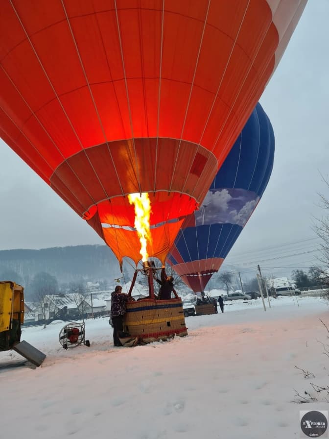 Подорож розпочали в селі Довге Іршавського району, що на Закарпатті. Андрій Риштун каже, що летіти краще взимку, адже холодне повітря краще піднімає гарячу кулю.