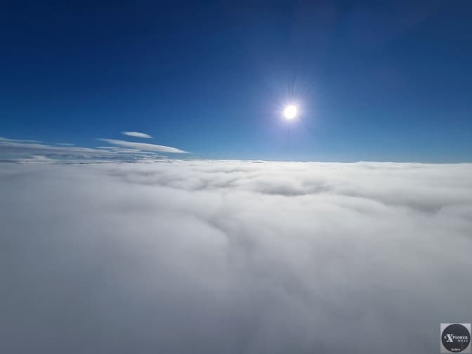 «Не встигли ми помахати всім рукою як куля сховалася в хмарах. Прилади показують висоту 1000 метрів. Це дивовижно. АН-2 витрачає на такий підйом аж п'ятнадцять хвилин. На висоті 2400м ми пробили хмари та нарешті поніжилися на сонечку», – розповідає Андрій Риштун.