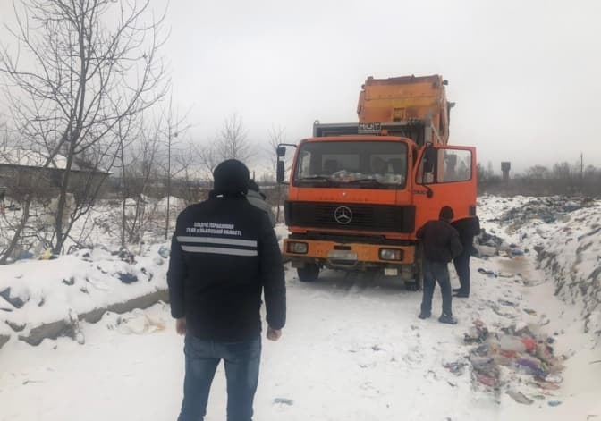Правоохоронці вилучили та доставили на арештмайданчик сміттєвоз «Мерседес», водій якого – 65-річний місцевий мешканець, нелегально відвантажував побутові відходи.
