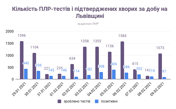 За минулу добу, 8 лютого, у Львові та на Львівщині коронавірус підтвердили у 97 осіб, повідомляє ЛОДА.