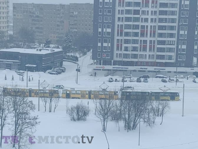 У зв’язку з негодою, виникли затримки у русі на всіх трамвайних та тролейбусних маршрутах.