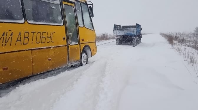 У Миколаївському районі в с. Мала горожанна - с. Колодруби буксирували шкільний автобус, в якому перебувало 6 дорослих та 2 дітей.