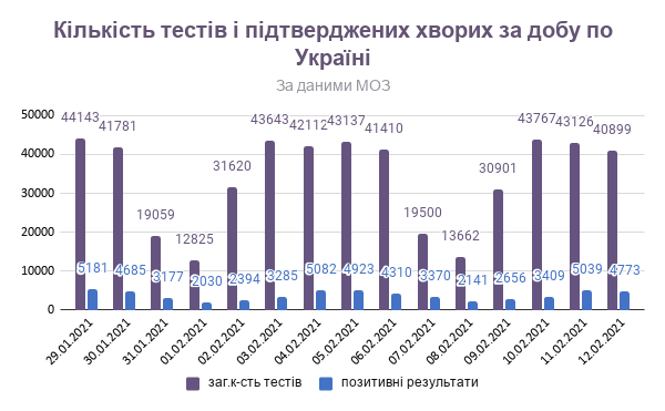 В Україні, за даними Міністра охорони здоров’я України Максима Степанова, станом на 12 лютого, зафіксовано 4 773 нових випадків Covid-19. Зокрема, захворіли 326 дітей та 212 медпрацівників.