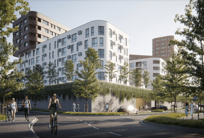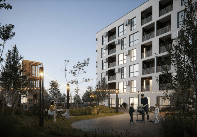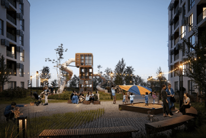 На сайті забудовника йдеться, що комплекс складатиметься із 6, 10, 16 поверхів, буде передбачено 200 паркомісць.