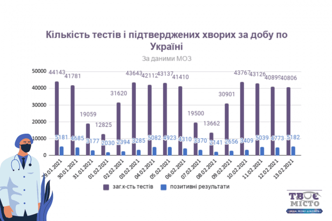 В Україні за добу підтвердили 5 182 нових випадків коронавірусної хвороби. Зокрема, захворіли 330 дітей та 226 медпрацівників.