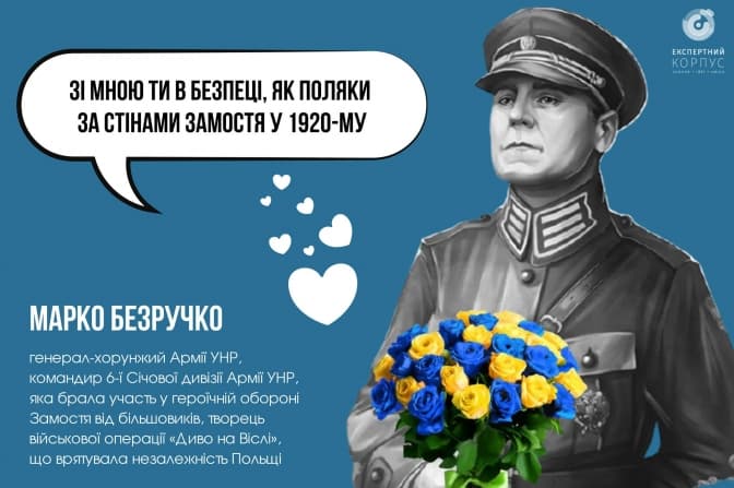 До дня усіх закоханих освітньо-інформаційна платформа Експертний Корпус створила зображення із героями військової еліти ХХ століття, вони припустили як ці люди могли зізнаватись у коханні.