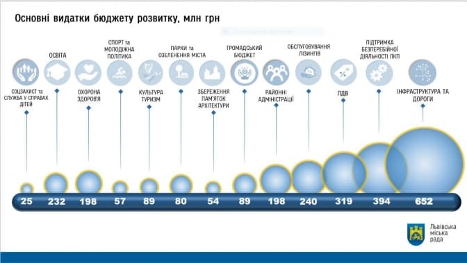 Найбільше коштів уже традиційно передбачать на розвиток інфраструктури – це 668 млн грн, але це вдвічі менше ніж торік.