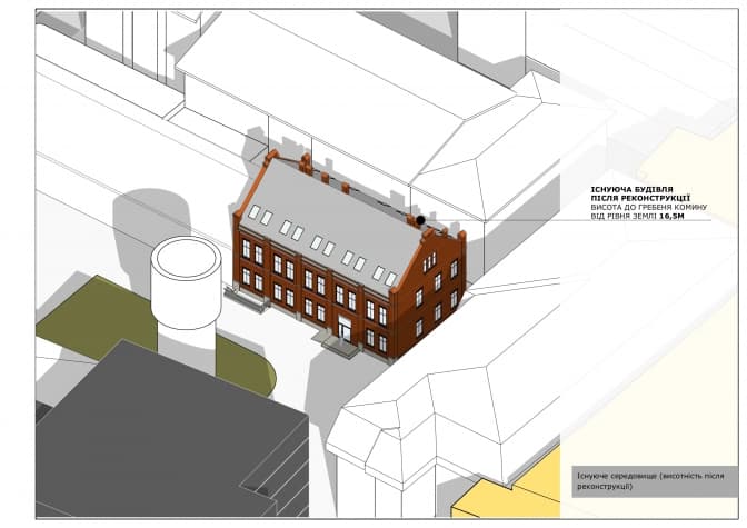 Будинок залишиться двоповерховим, але дах дещо припіднімуть. Висота цієї будівлі не має перевищувати 16,5 метра.