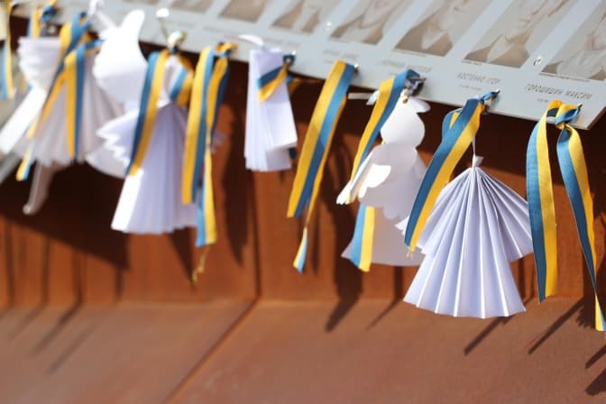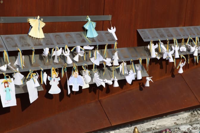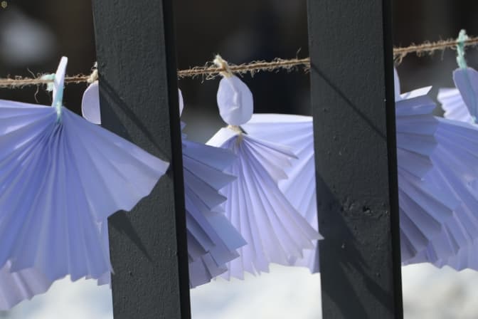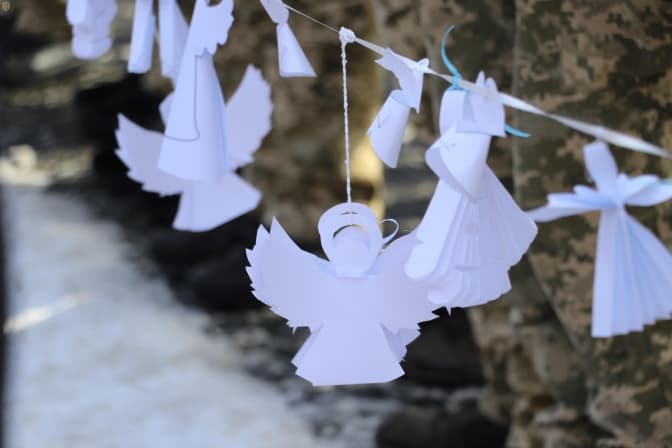 Напередодні учні львівських шкіл під час тематичних уроків змайструвати паперових ангелів, які сьогодні розвісили на Меморіалі. До акції долучились самі школярі, освітяни, військові, родини Героїв Небесної Сотні та всі небайдужі.