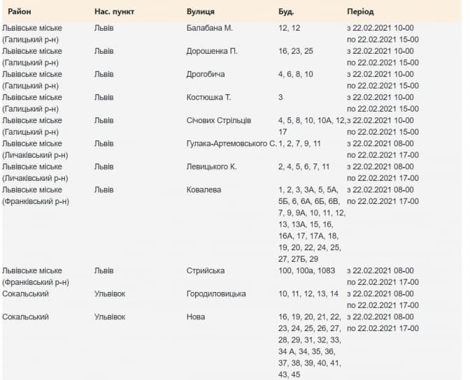 Завтра, у понеділок, 22 лютого, у трьох районах Львова вимикатимуть світло. «Львівобленерго» проводить планові ремонтні роботи, інформує пресслужба структури.