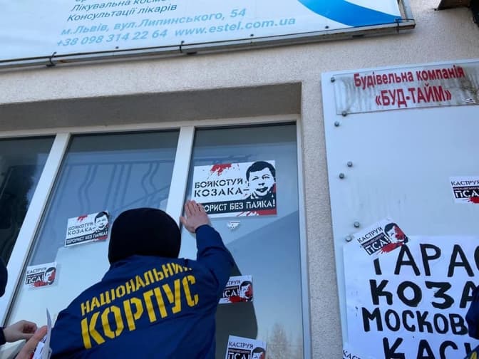 Сьогодні, 23 лютого, у Львові активісти Haцioнального коpпycу провели блокування підприємств родини депутатів від партії «Опозиційна платформа – За Життя» Тараса Козака і Віктора Медведчука. Акція пройшла під стінами «Бетонбуду», «Капітал плази», «Будімексу» та «Трансмонолітавто».