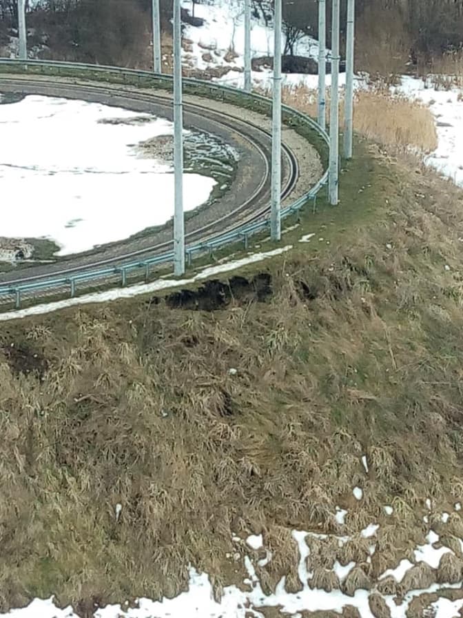 У Львові, на Сихові, стався зсув ґрунту на кінцевій зупинці трамвая №8. Про зсув повідомила львів’янка, опублікувавши фото у Фейсбук-спільності «Варта-1».