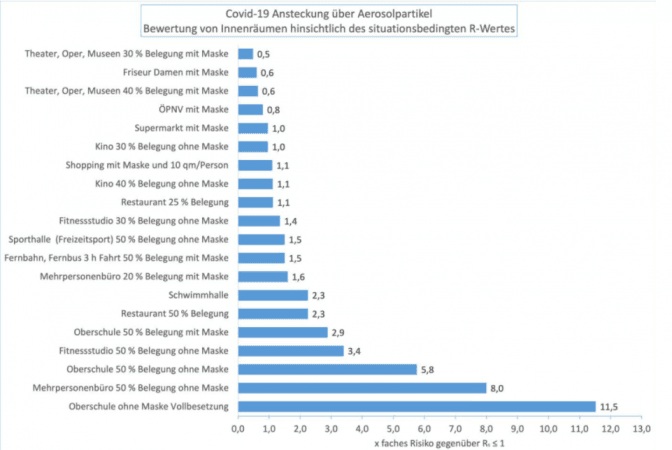 Дослідники виявили, що якщо люди одягнені в захисні маски, а приміщення заповнені відвідувачами на 30%, то найбільш безпечними є музеї, театри та оперні зали.