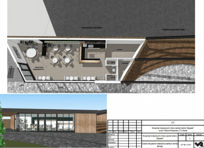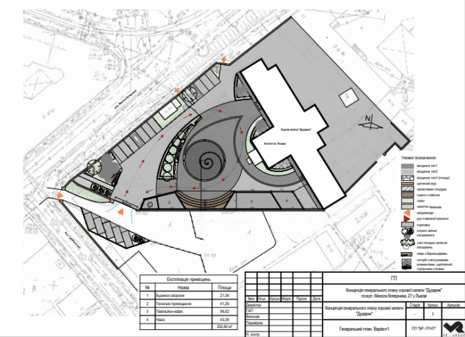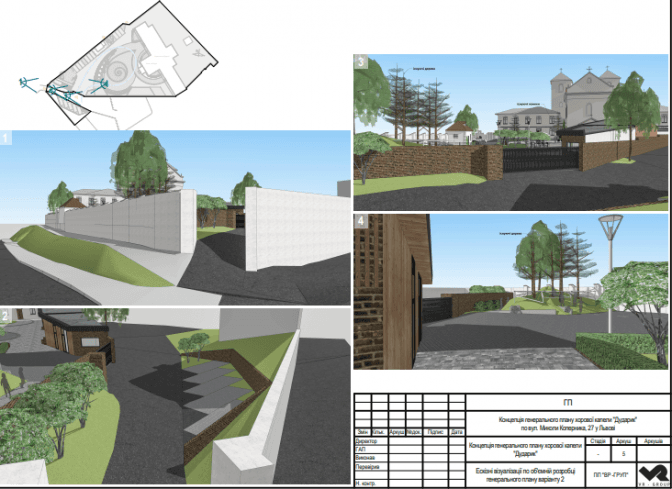 На площі перед входом у школу міг би міститися амфітеатр, а поблизу сучасна скляна світлиця, де можна було б робити благодійні концерти. На задньому подвір’ї, де зараз є занедбані гаражі, котельня та інші покинуті приміщення – концертну залу на 320 посадкових місць.