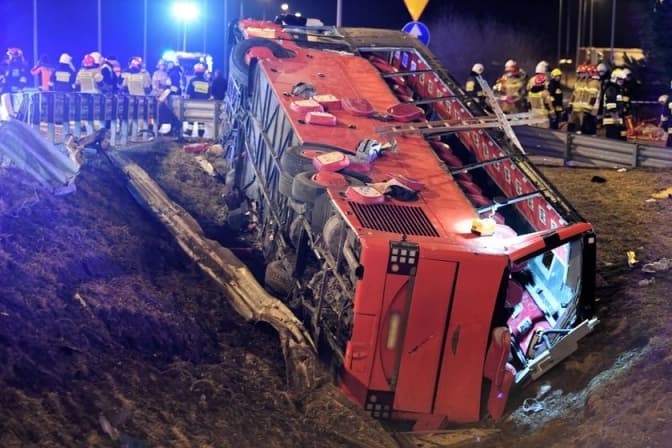 Нагадаємо, жахлива аварія сталася учора вночі на автостраді А4 поблизу міста Кашице. За попередньою версією, водій автобуса рейсом Познань – Херсон не впорався з керуванням. ДТП призвела до загибелі 6 людей, і ще 41 громадянин постраждав, заявив прес-секретар МЗС України Олег Ніколенко у своєму Twitter.
