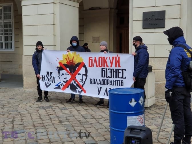 Сьогодні, 11 березня, на протест перед входом до Ратуші зібралися активісти Національного корпусу. Під час сесії міської ради вони проведуть акцію «Ні бізнесу колаборантів у Львові», таким чином закликаючи місцеву владу вжити заходів для боротьби проти колаборантів Тараса Козака і Віктора Медведчука та їхнього бізнесу у Львові.