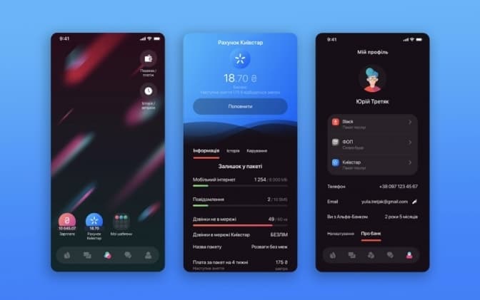 - поповнити в один дотик (з банківського – на мобільний рахунок) – технологія drag’n’drop;