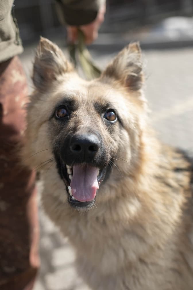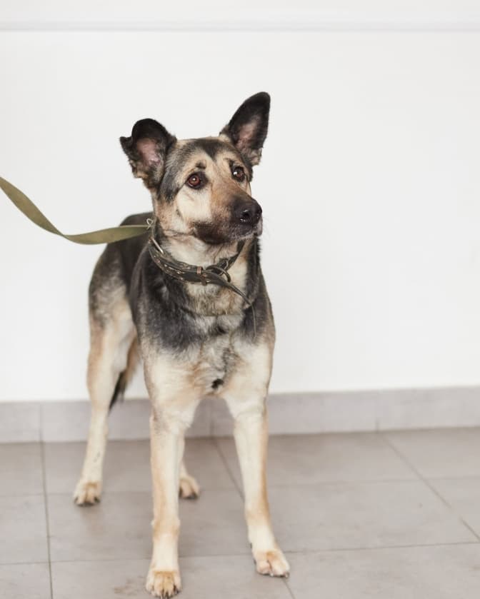 Метис німецької вівчарки, чемно виконує команди, підозрюємо, що була домашньою. Серйозна, виважена дівчинка, постійно має заклопотаний вигляд, ніби вирішує мільйон справ одночасно.