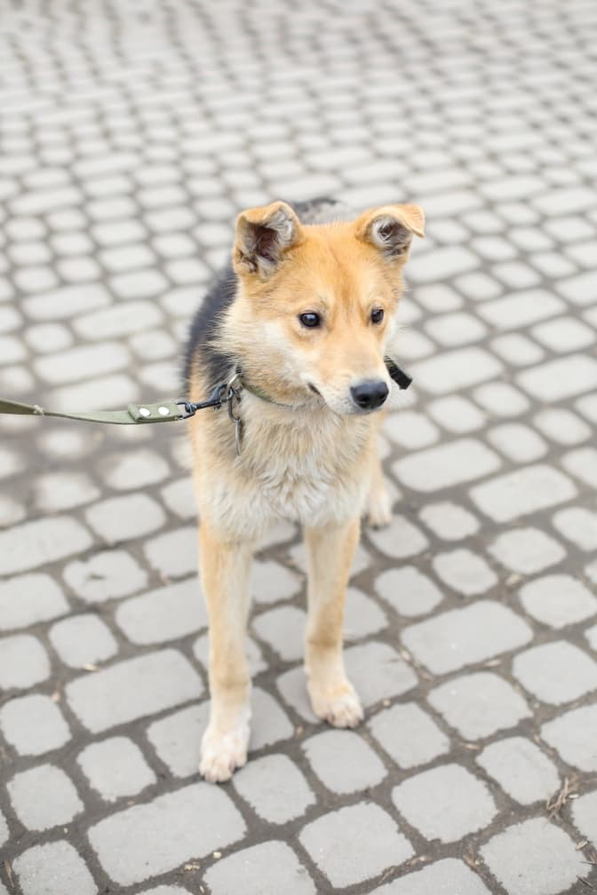 Маленька кнопочка, яка швидко освоїлася та вже роздає свої посмішки всім направо й наліво. Вміє гуляти на повідку та поводить себе, як домашня, тож, можливо, її шукають.