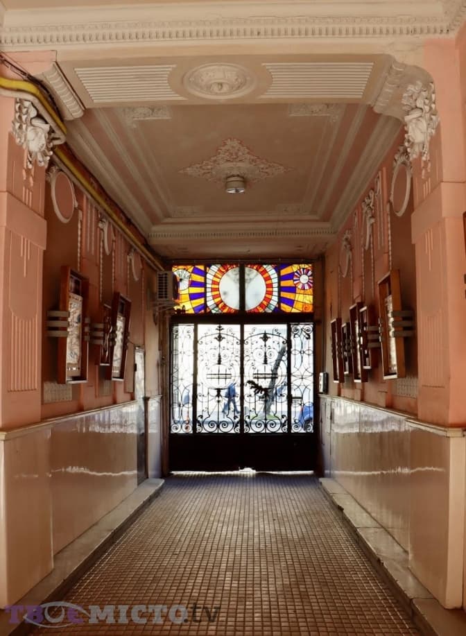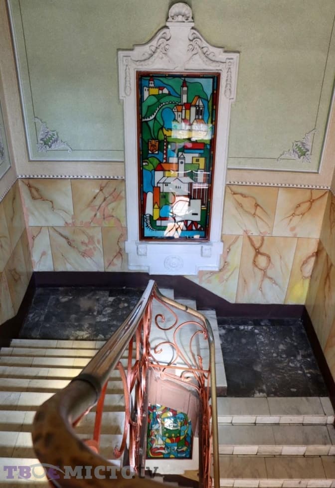 Сама будівля на вулиці Січових Стрільців, 7 є триповерховою та має гарні вітражі.