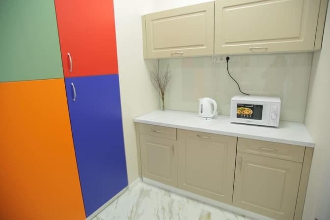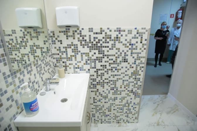 У BAY ROOM – саме так назвали палати, на честь однієї з членкинь опікунської ради лікарні, яка долучилася до оновлення, – Тетяни Бей, є зручні ліжка з новеньким матрацом, затишний ремонт, кухонний куток з санвузлом і всі умови для спільного перебування дитини з мамою і татом.