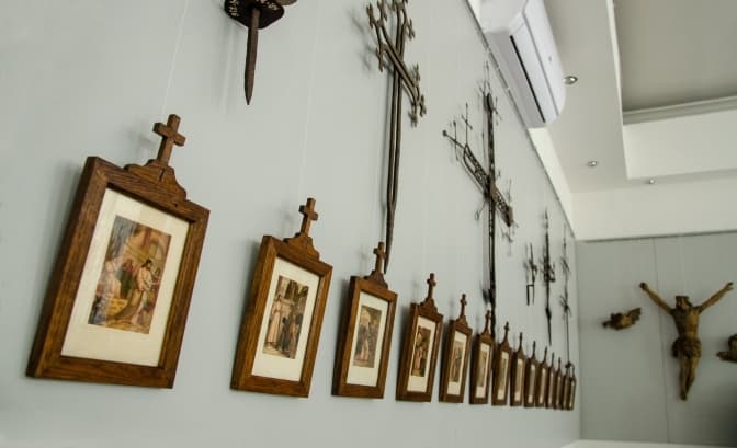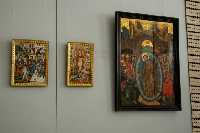 Хресна дорога, металеві церковні хрести, традиційний бойківський костюм молодят 1920-х років з Львівської області, святкові жіночі і чоловічі костюми, прикраси та інші цікаві експонати чекатимуть всіх охочих на виставці «Наспіви про Великодень» у Музеї імені Климентія Шептицького.