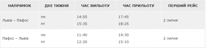 Лоукостер планує виконувати по два щотижневих рейси зі Львова в Пафос. Квитки на новий напрямок уже доступні на сайті та в мобільному додатку авіакомпанії.