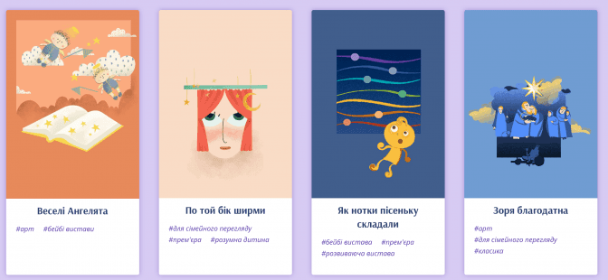 Найближча вистава «Веселі Ангелята» для дітей до 3-х років відбудеться у суботу, 8 травня, об 11:00. Для дорослих ставитимуть «Садок вишневий» о 12:00 та 14:00. Крім того, о 14:00 цю виставу можна буде послухати в перекладі англійською, польською та французькою мовами в межах Французької весни.