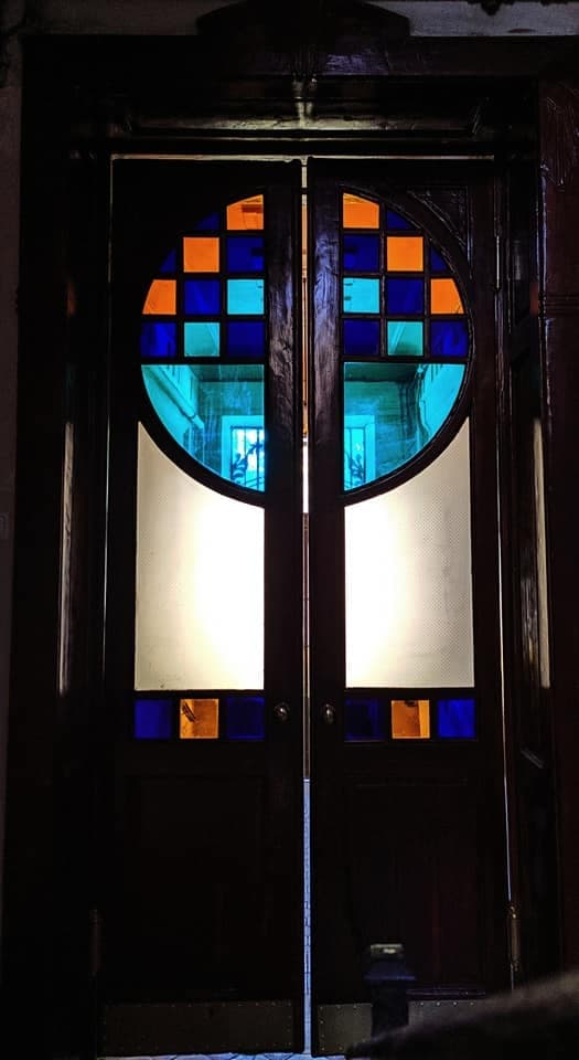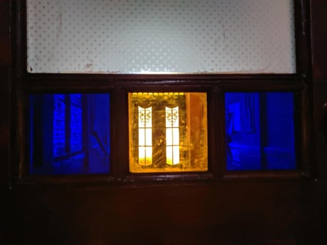 «Ескіз вітража «Помаранчеве дерево» відновили на основі згадки сусідів про ультрамаринове скло, яке тут колись було», – каже він.