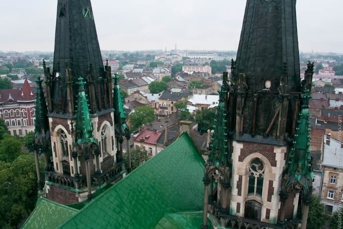 Нині ця будівля є найвищою у місті, висота 88 метрів. Збудували неоготичний храм УГКЦ 1911 року за проєктом Теодора Тальовського на пам'ять про популярну імператрицю Єлизавету Баварську, відому як Сісі, дружину цісаря Австро-Угорщини Франца-Йосифа I. Її гострі шпилі та високі вежі стали візитівкою Львова.