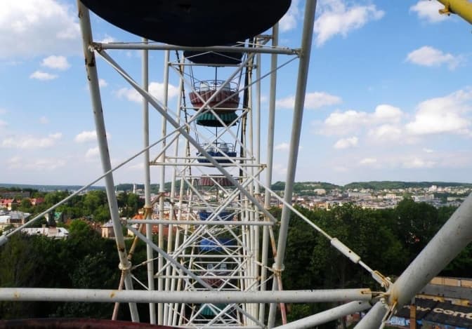 Колесо огляду у Львові має 24 метри, з цієї висоти відкривається чудовий краєвид. Оскільки атракціон далеко не новий (механізму вже понад 25 років), щороку перед відкриттям він проходить експертне обстеження. Кабінки не засклені, тому кататися на ньому приємно тільки за гарної погоди.
