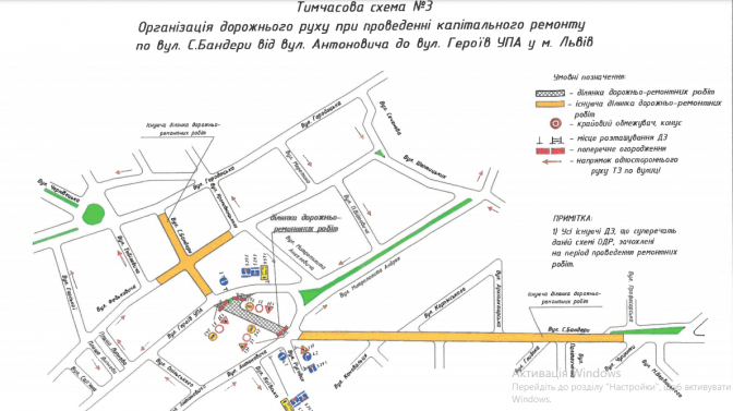 Змін у русі транспорту по вул. Антоновича і вул. Героїв УПА це не спричинить. Роботи проводить ТзОВ «Онур» на замовлення ЛКП «Львівавтодор».