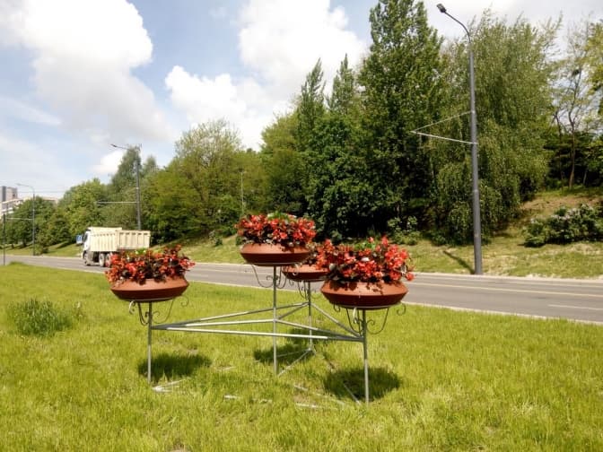 16 наземних конструкцій з чотирма чашами виставили на центральному газоні проспекту Святого Івана Павла ІІ (стара назва – вул. Хуторівка).
