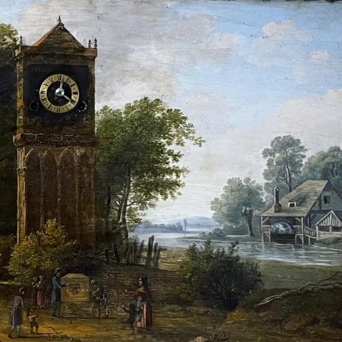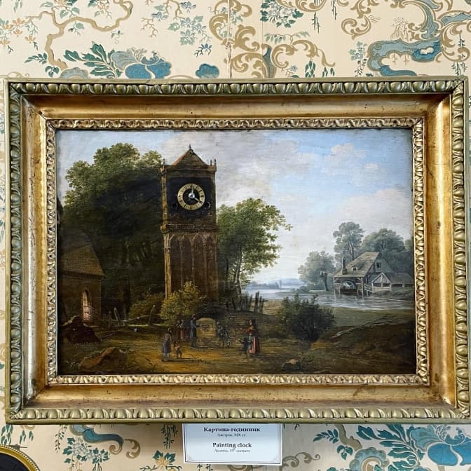 Цікавим експонатом є картина-годинник, виконана в ХІХ ст. в Австрії. На картині зображено сільський пейзаж з вежею, у яку вмонтовано годинник, механізм котрого міститься з тильного боку полотна. У правій частині картини зображений млин, роль колеса якого виконує рухоме коліщатко механізму годинника.