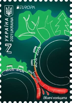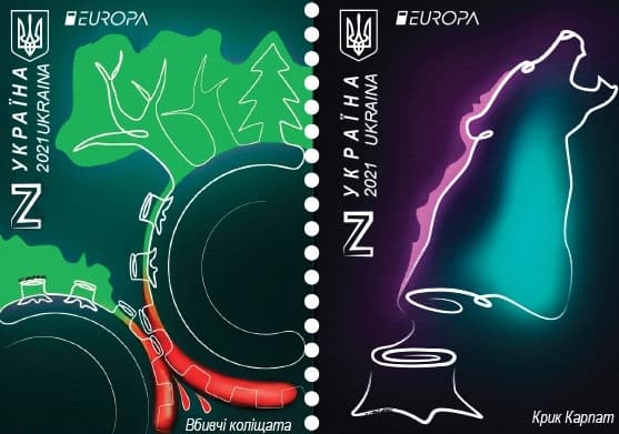 Як повідомляє пресслужба компанії, поштова марка «Вбивчі коліщата» зображує залізні механізми, що знищують ліси, а марка «Крик Карпат» демонструє силует ведмедя, який благає про допомогу. Це – найбільший хижак гірських лісів Українських Карпат, популяція якого щороку скорочується. Їхня авторка – юна художниця, студентка Ольга Сімоненко.